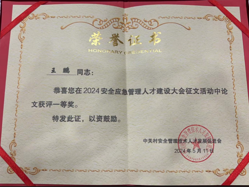 会议期间,公司教师针对应急管理的科学基础探讨、人工智能在应急管理体系中的应用探究、“大安全、大应急”框架下的智慧应急创新联合体、智慧安全工程人才培养等内容与参会专家学者进行了现场交流和研讨。公司教师王鹏提交的论文“多因素耦合下煤矸石山自燃危险性综合评估与控制策略研究”获得一等奖、陈景序提交的论文“地区应急人才培养模式与全产业链服务探究”获得二等奖。
