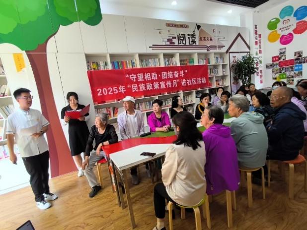 活动伊始,青年研习社成员通过精心设计的有奖问答环节,围绕《民族政策与法治思想》、《国家通用语言文字法》、《内蒙古自治区促进民族团结进步条例》等核心法规政策,与社区居民展开互动。现场气氛热烈,居民们踊跃抢答,在轻松愉快的氛围中深化了对民族政策的理解。