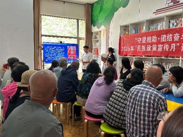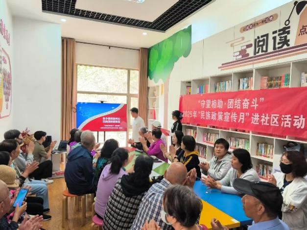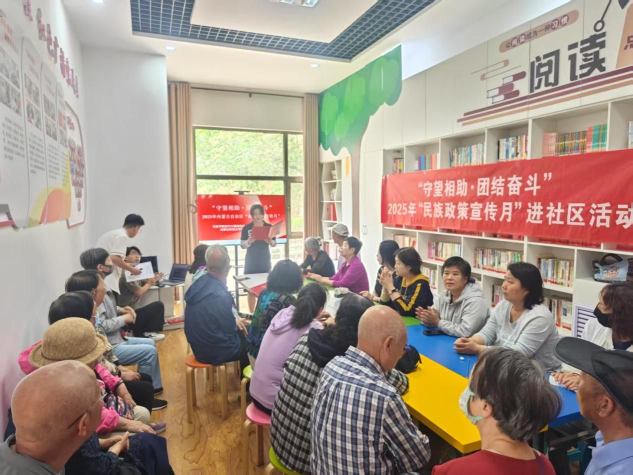之后,青年研习社成员叶奕成以“畲乡情深绘同心·民族团结谱新篇”为题,进行了主题宣讲。他生动分享了浙江省景宁畲族自治县将高质量发展与民族团结深度融合的实践案例——“景宁样本”,展现了民族地区发展的“中国智慧”,让在场居民对于民族政策有了更深的了解。