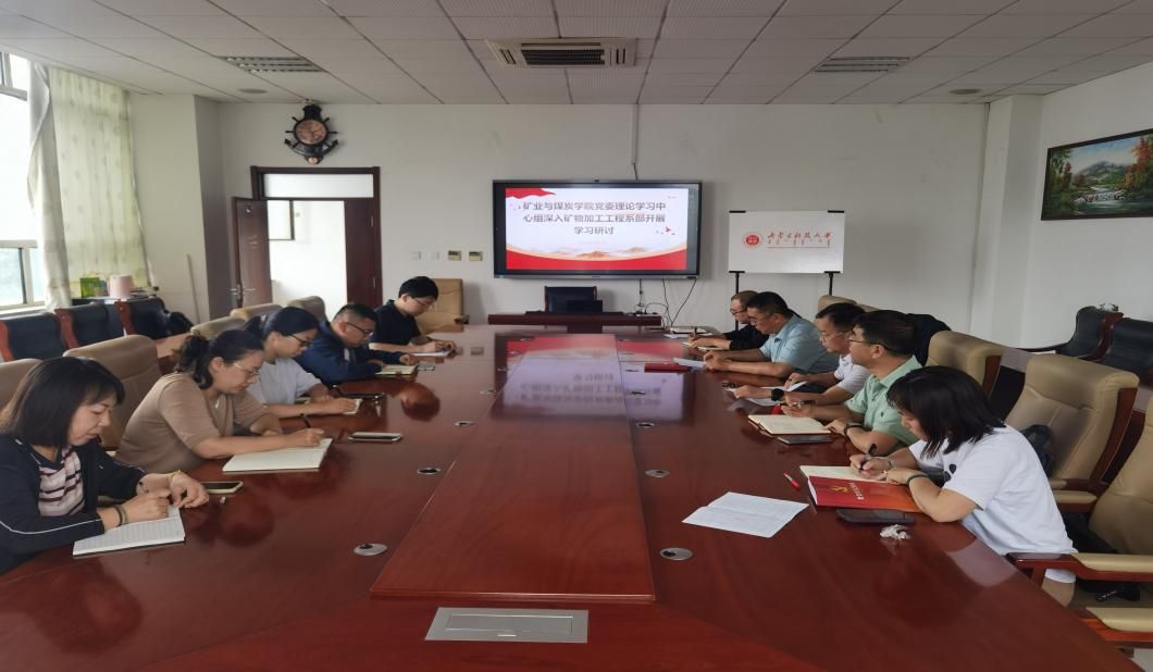 2025年7月7日304永利集团党委理论学习中心组深入矿物加工工程系部开展理论学习研讨。公司党委书记段志峰主持会议,公司中心组成员、矿加系教师代表参加会议,公司党委委员、副董事长李卫平出席并指导工作。