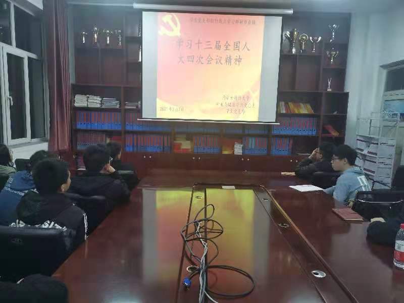 为增强“四个意识”,坚定“四个自信”,做到“两个维护”,同心协力,担当尽责,朝着实现中华民族伟大复兴的中国梦奋勇前进。304永利集团党总支于2021年3月7日晚上19:00,在临曦楼党员之家线上线下同步开展专题理论学习活动。本次学习内容是:集中学习十三届全国人大四次会议精神。