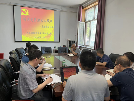 6月23日,教工第一党支部在公司办公楼102会议室召开支部党员会议,开展庆“七一”系列主题活动之“听老党员讲初心故事”。
