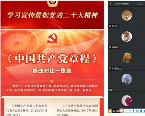 田慧芳结合党的二十大报告,详细解读了《中国共产党章程》的修改过程、修改内容及修改特点,指出新党章的修改是我们党站在第二个百年奋斗目标新征程的起点上完成的,此次党章修改将党的二十大报告确立的重大理论观点和重大战略思想写入党章,充分体现了马克思主义中国化时代化最新成果,充分体现了党的十九大以来党中央提出的治国理政新理念新思想新战略,充分体现了党的工作和党的建设的新鲜经验,以适应新形势新任务对党的工作和党的建设提出的新要求。大家要认真学习党的二十大精神,从学习新党章开始,不断加强党性修养,在工作岗位中履职尽责,充分发挥党员的模范带头作用。