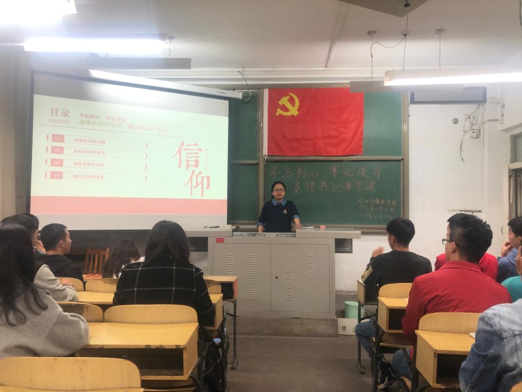 2019年11月7日19:00,公司员工第二党支部在临曦楼208举办“不忘初心、牢记使命”主题教育之“品味信仰的味道,做合格共产党员”支部书记讲党课活动,俞文琳同志为主讲人,员工第二党支部党员参加学习。