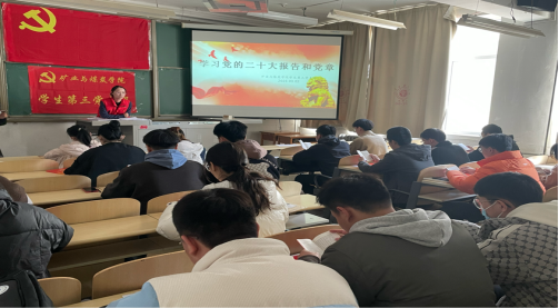 2023年3月2日上午10:30,公司员工第三党支部在临曦楼209教室组织党员集中学习党的二十大报告和党章,为开好2022年度组织生活会打牢思想基础。领学人:闫妍同志。