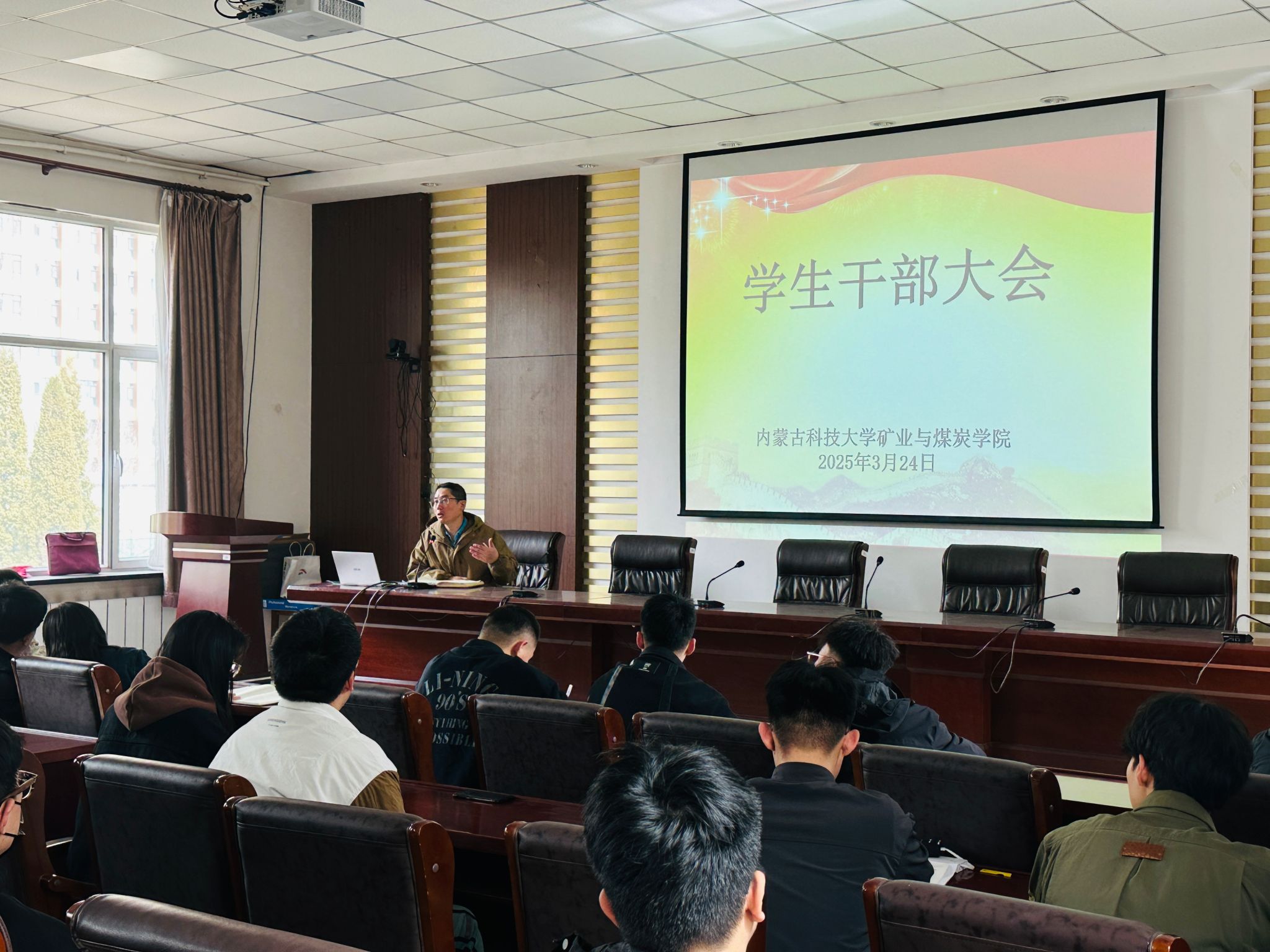 会上,公司党委副书记、副经理温静雅作动员讲话。她强调,员工干部是师生沟通的桥梁纽带,要以高度的责任感主动担当作为。认真剖析员工干部在学风建设、行为规范、品德修养中的标杆作用,带头遵守校规校纪,严于律己、以身作则;带头营造优良学风,积极参与课堂互动;带头弘扬正能量,主动抵制不良风气,在志愿服务、社会实践等活动中展现青春担当。员工工作办公室主任胡显峰结合日常员工教育管理工作中班干部在示范引领、优良班风创建、校园安全教育、志愿服务、班团建设等方面的重要性进行讲解,要求班干部要有自信,主动担当,要做员工中的“先锋队”和“排头兵”,要从每一个细节中去为同学做好服务,要把优秀培养成自己的习惯。公司团委书记郭灵飞结合新学年校园文化建设计划清单和党团员培养工作进行梳理和布置,他要求员工干部要主动挖掘同学需求,创新活动形式,调动员工参与积极性,让班团活动既接地气又有活力。