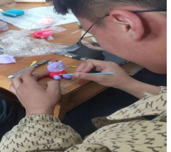 一只纸杯,五彩粘土,专注的神情,灵巧的双手,呈现出一幅幅、一个个惟妙惟肖的作品。同学们认真揉、搓、捏手中的粘土,充分发挥着自己的奇思妙想,一个个活灵活现的小摆件诞生。