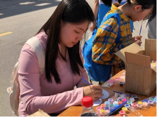 为弘扬中华优秀传统文化,丰富同学们的校园文化生活,增强心理调适能力,2023年9月21日,304永利集团在梅园门口举办“巧手绘心,妙扇生花”活动。